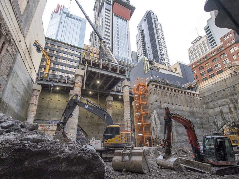 The new Sydney Metro Martin Place integrated station development includes the new Martin Place Station, two new buildings above the station, and new underground pedestrian connections.